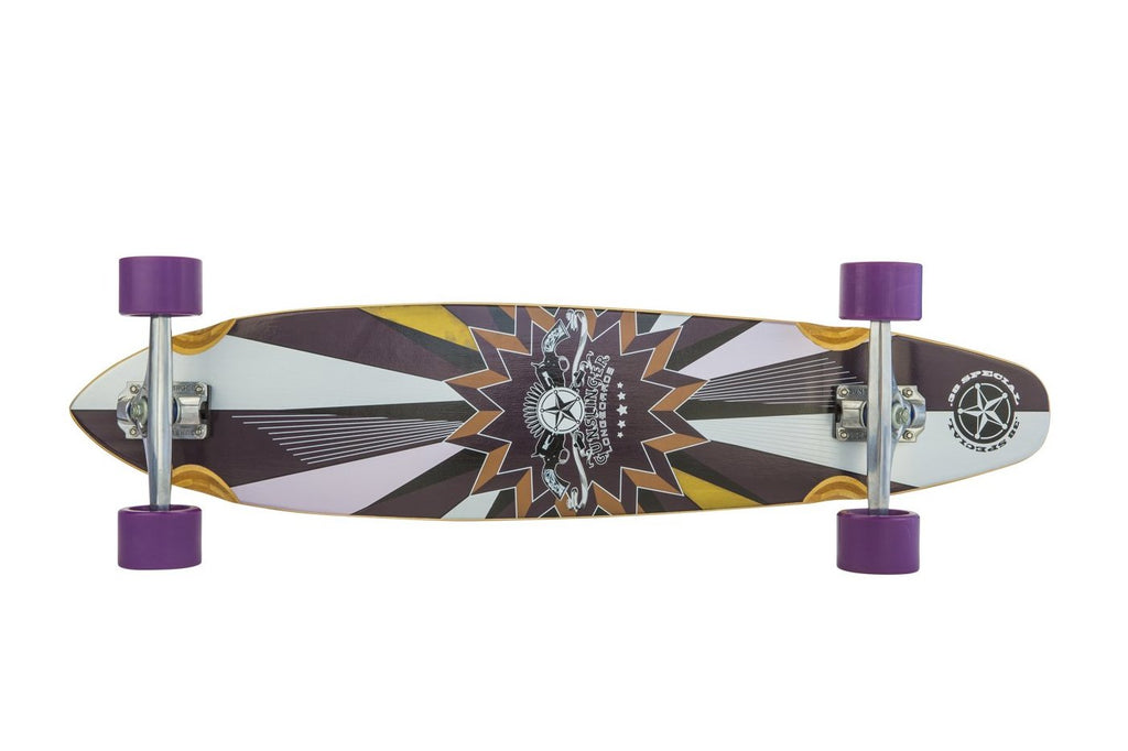 The 38 Special is designed for beginners to learn on and experts to shred on. The Longboard is a Bamboo cruiser with kicktail, built for speed. Just like a 38 Calibre bullet, the Special shoots narrow and long for aerodynamics.